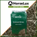 HorseLux Snittet græs består af 3 unikke græstyper; grønthøstet havrehø, timote og esparsette samt koldpresset rapsolie. På den måde sikres et struktureret og fiberholdigt produkt, som samtidig er støvfrit.