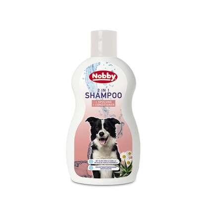 2 i 1 hundeshampoo til alle racer. Indeholder aloe vera og kamille. Hjælper på tør pels og blødgør hundens hud, og er tilpasset hundens pH-værdi.