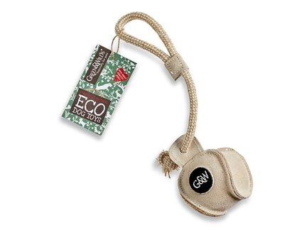Chuck Ball er lavet i kraftig suede, understøttet af 4 lag jute for at styrke holdbarheden, og så er den fyld med plantefibre. Rebet er lavet i genbrugsbomuld, og der er ingen tilsatte kemikalier, der på nogen måde kan gøre skade på hunden, når der leges og bides.
