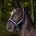 Grime i polypropylen. Justerbar i halsen på begge sider og også under næsen. Pistolkrog i venstre side. Med rhinsten og tone-i-tone pileforing på hals, næse og sidestykker. Ekstra alt.