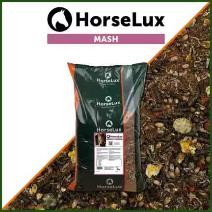 Hvis du ønsker en lavere tildeling af stivelse, kan du med fordel blande Mash op med HorseLux FiberPellets, da det samlet set vil minimere indtaget af stivelse.