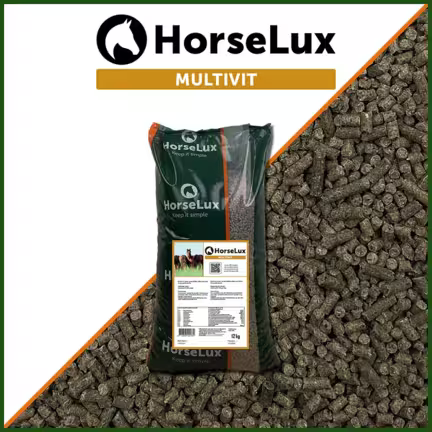 HorseLux MultiVit dækker hestens daglige vitamin- og mineralbehov og kan doseres individuelt efter hestens størrelse, alder og brug.