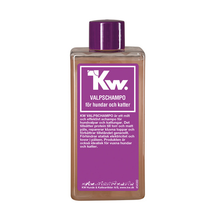 KW HVALPE SHAMPOO er en mild og effektiv shampoo til hvalpe og killinger. Tilfører protein til triste og udtørrede pelse, hvorved f.eks. spaltede hårspidser hurtigt genopbygges. Modvirker statisk elektricitet og filtrede pelse. Også velegnet til voksne hunde og katte.