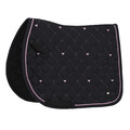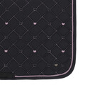 "Lize" sadelunderlaget er udsmykke med et sødt, syet hjerteprint og har en stilfuld dekorativ snor. En hjerteformet Q-nål på venstre side tilføjer en fin detalje. Sadelunderlaget er foret med absorberende net, der holder ponyen kølig og tør under ridning. Derudover er sadelunderlaget også udstyret med korte D-ringsløkker og gjordløkker med velcrolukning.
