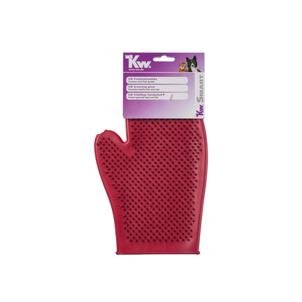 Handsken er dobbeltsidet. Den ene bruges til at fjerne løse hår. Den andenside bruges til at give din hund massage.
