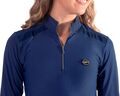 Denne skjorte er UV-bestandig. Det hurtigttørrende og åndbare stof gør denne skjorte perfekt til træning. Bunden af ærmerne og forsiden af skuldrene er forsynet med en mesh-indsats. Denne skjorte er afsluttet med et 'Equestrian Sports' print på venstre arm og et gummi QHP badge på venstre bryst.