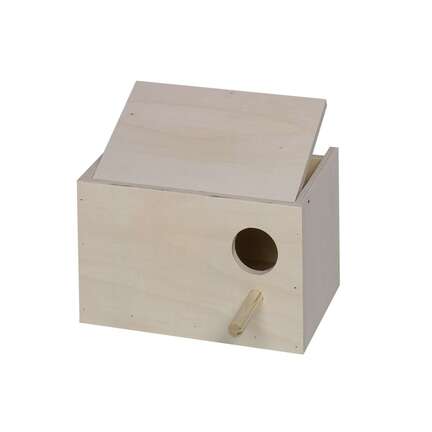 Rede til undulater og agapornider lavet af krydsfiner og højre hul inklusiv siddepinde og skrabe.